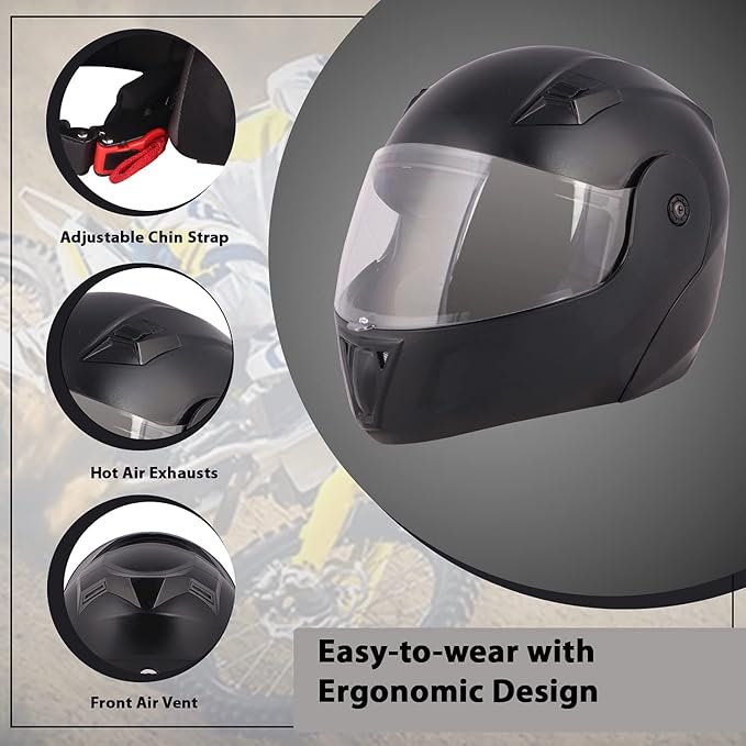• EYE PROTECTION: Flip up helmets come equipped with a built-in visor or shield that protects your eyes from wind, debris, insects, and UV rays. The visor has an air path for anti-fog, improving visibility in various weather conditions.